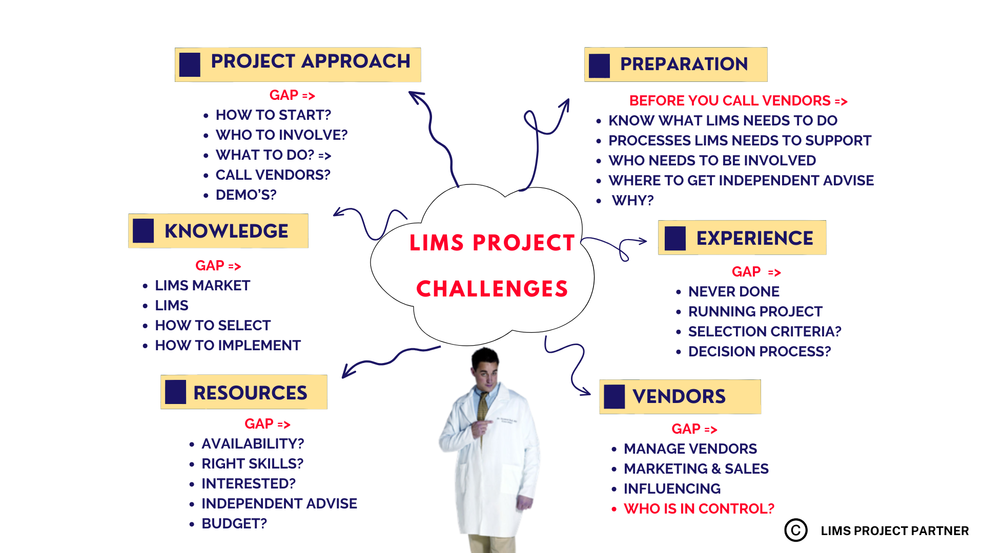 LIMS Project Partner's broad network of experiences resources can help in, at least partly, solving resource issues at both customers and vendors.